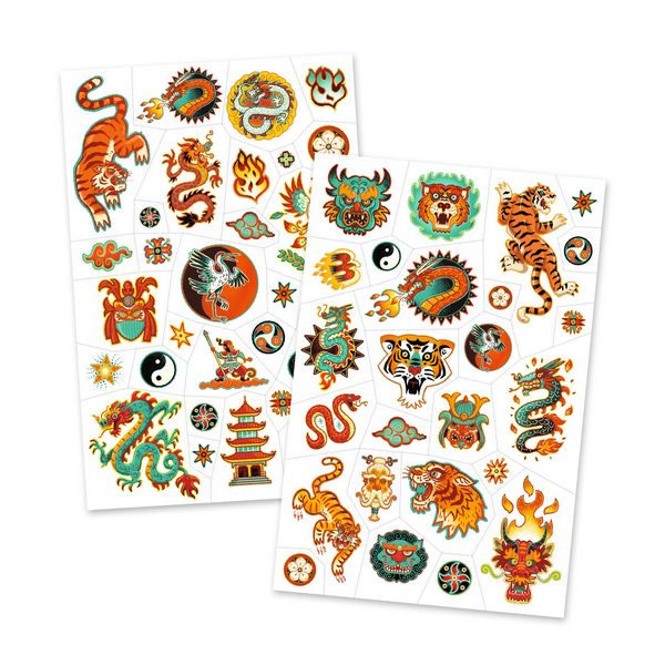 Deux planches de tatouages temporaires aux motifs inspirés des arts martiaux asiatiques pour avoir l’allure d’un vrai guerrier ! Faciles à utiliser, ils sont prédécoupés et s’appliquent avec un peu d’eau. Testés dermatologiquement.