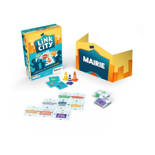 Dans ce jeu d’ambiance coopératif, les joueurs créent en 6 tours palpitants la ville la plus grande possible, pour maximiser les connexions entre les tuiles Lieu et marquer des points. À chaque tour, une personne différente joue le rôle de la mairie.