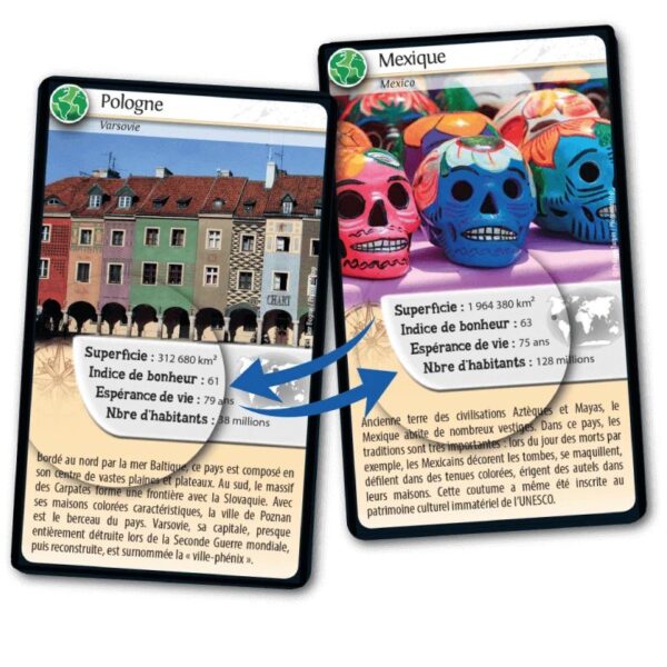 Découvrez leurs caractéristiques, puis pariez sur leurs points forts pour collecter toutes les cartes du jeu et remporter la partie.