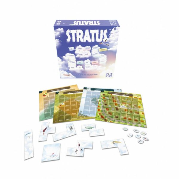 Stratus est un jeu d’énigmes à résoudre en posant des nuages sur quatre mots regroupés grâce à un mot-clé, à trouver aussi parmi les mots ! À la fin, pour valider la résolution, les mots-clés forment un rébus humoristique