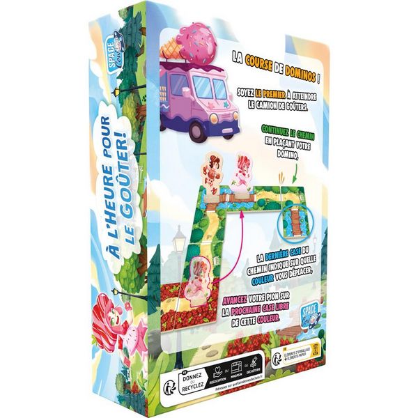 À l’Heure pour le Goûter! est un jeu de course qui entraîne les enfants à reconnaître les couleurs en s’amusant, grâce à un matériel adorable et facile à transporter.