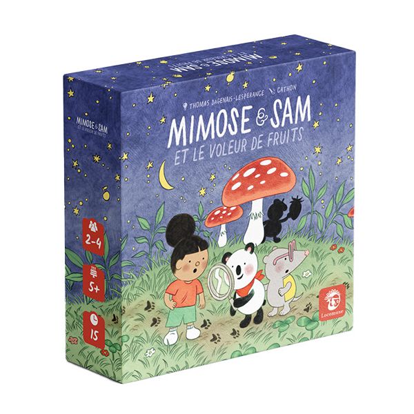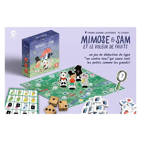 Les fruits disparaissent du jardin ! Mimose, Sam et leur amie Bouillotte essaient de découvrir qui ou quoi les vole! Dans ce jeu de déduction unique UN CONTRE TOUS pour les enfants et les familles à partir de 5 ans, les joueurs incarnent des détectives, rassemblant des indices, éliminant les suspects, essayant de déterminer la personne qui vole tous leurs beaux fruits.