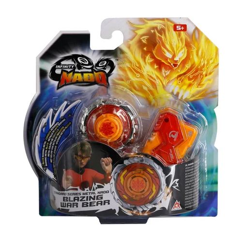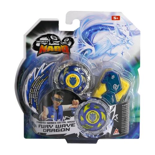 Le kit de la toupie Infinity Nado Standard comprend : une toupie Infinity Nado Standard, un lanceur et sa crémaillère, un outil d’assemblage et une pointe acrobatie. 2 modèles assortis: Blazing War Bear / Fury Wave Dragon.