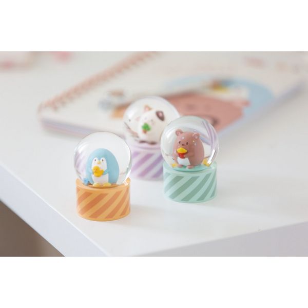 Plongez dans un monde magique plein de paillettes et de plaisir avec le globe de paillettes mymochi mettant en vedette le mignon pingouin Waddle avec son moodi, un canard jaune! Dès que le globe est secoué, un tourbillon scintillant de paillettes se déploie, enveloppant les deux amis et les faisant briller dans une lumière rayonnante.