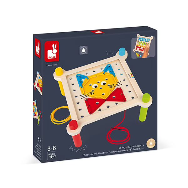 “Le laçage” est un jeu d’éveil ludique qui permet aux enfants de jouer à faire des nœuds. Ce jouet de la gamme Essentiel propose deux niveaux de jeu pour s’adapter à tous les âge, de 3 à 6 ans.