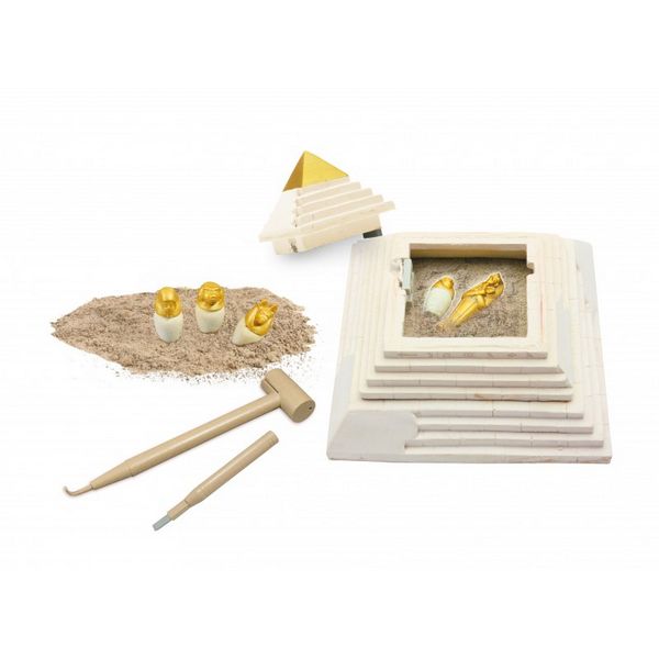 Une fois ouverte, déterre 5 trésors d’Egypte antique avec les outils inclus. Expose ta pyramide et les trésors dans ta chambre.