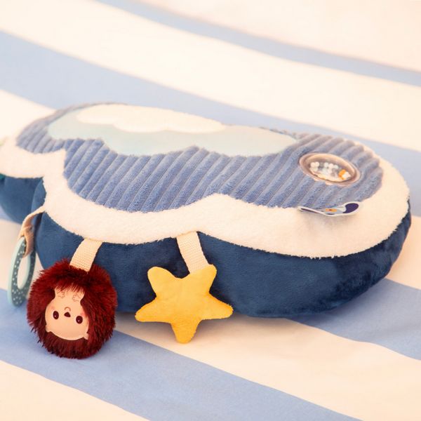 Direction les nuages avec Jules le chien ! Ce tendre coussin d’activités en forme de nuage accompagne bébé dans ses premières découvertes : les textures, les sons, les nuances de couleurs…
