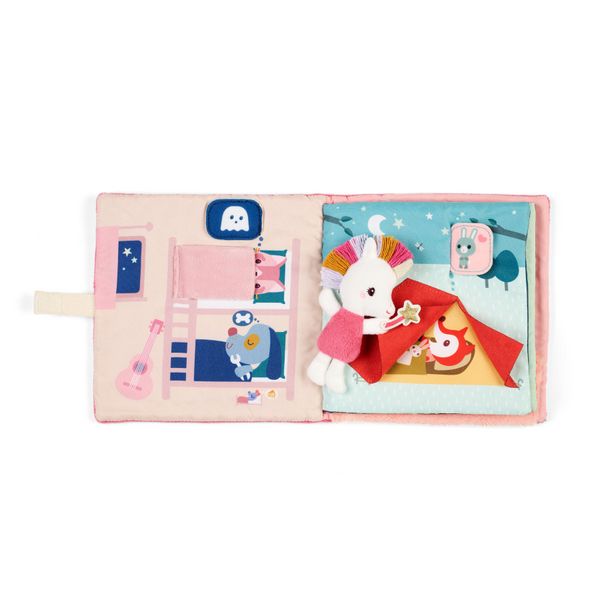 Idéal pour les premières histoires, ce livre d’éveil aux couleurs tendres crée une atmosphère rassurante pour l’enfant et apaise ses petites peurs. Avec Lena, la nuit peut être remplie de magie ! À la nuit tombée, Jules le chien, Joe le dragon et leurs amis se plongent dans un profond sommeil mais les mauvais rêves rôdent. Heureusement, Lena veille sur ses amis ! Elle parcourt chaque chambre pour chasser ces petits monstres grâce à ses pouvoirs magiques. Pour rendre l’aventure encore plus vivante, une adorable peluche licorne accompagne le livre : saisissez-la et partez avec Lena à la rencontre des amis endormis. Ensemble, transformez les cauchemars en belles histoires enchantées ! Ce livre interactif cache aussi des surprises : certains éléments en tissu se soulèvent pour stimuler la curiosité et les sens de votre enfant.