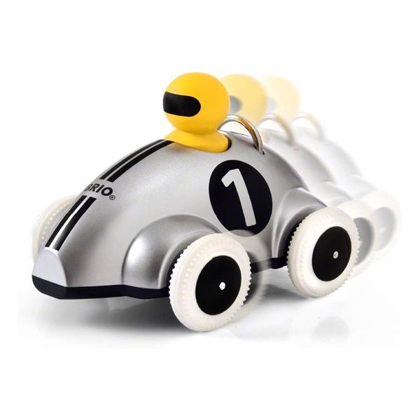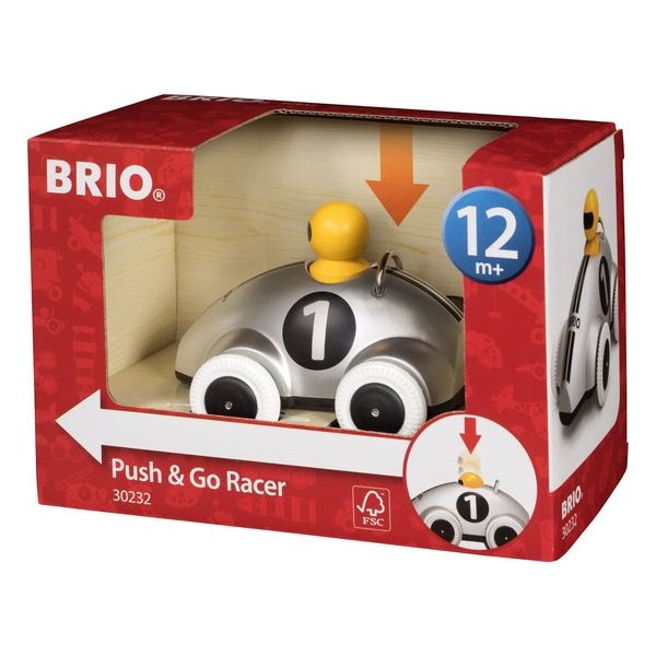La voiture de course “push & go” est amusante et stimule l’activité et la motricité fine.