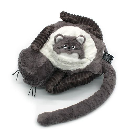 La peluche chat Ptipotos de 32 cm couleur grise est vendue avec son bébé caché dans son ventre.
