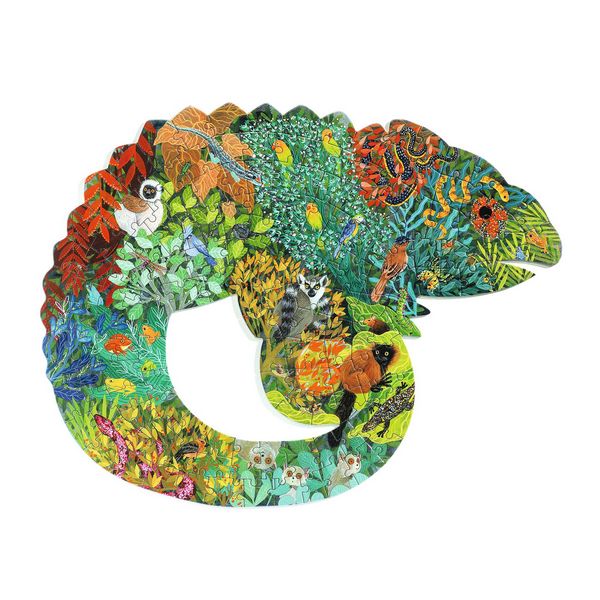 Le Puzz’Art Chameleon est un puzzle de 150 pièces. Dans un format inédit, sans coin ni bordure, tout l’art du puzzle est bousculé. L’enfant découvre à travers cette grande silhouette ajourée un caméléon, dans lequel fourmille un monde imaginaire.