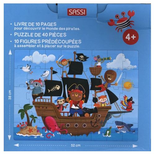 De grandes aventures t’attendent avec les pirates ! Feuilletez le livret, construisez le puzzle et apprenez à reconnaître les différents éléments du monde des pirates.