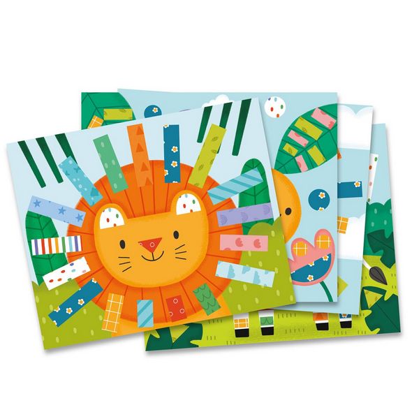 15 feuilles de motifs à découper et à coller pour habiller les décors. Des modèles sont fournis pour aider l’enfant à réaliser l’activité.