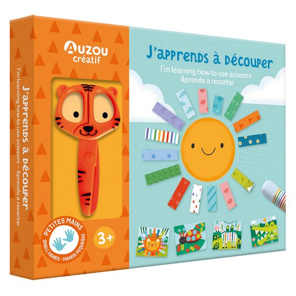La paire de ciseaux adaptées aux petites mains en forme de tigre permettra à l’enfant à découper sans se faire mal !