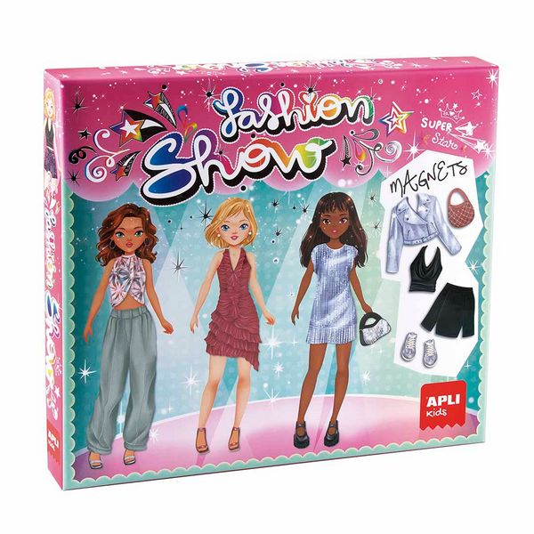 Le jeu contient 1 scène magnétique et 43 magnets en forme de différents vêtements et accessoires aux designs les plus actuels.