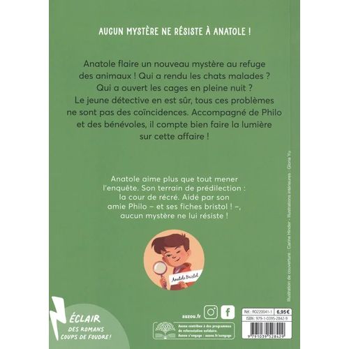 Anatole flaire un nouveau mystère au refuge ! D’abord les canalisations sont bouchées, puis les animaux sont libérés en pleine nuit, et enfin les chats tombent tous malades… Le jeune détective en est sûr, tous ces problèmes ne sont pas des coïncidences. Accompagné de Philo et des bénévoles, il compte bien faire la lumière sur cette affaire !